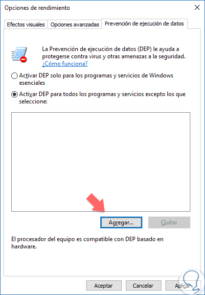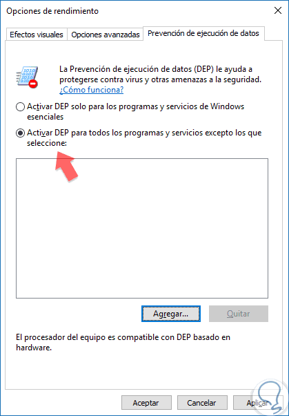 1. Activar o Desactivar DEP Windows 10 modo gráfico
