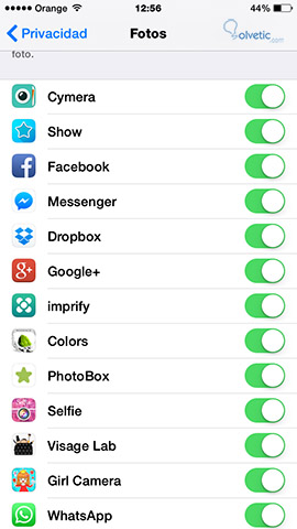 Es decir, por ejemplo en la categoría fotos, si la marcamos, podremos ver todas nuestras Apps que tienen permiso para acceder, y si lo consideramos necesario, podremos seleccionar cuál queremos que deje de hacerlo.