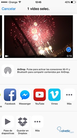 Guardar en Dropbox desde iPhone una selección de foto/os y video/os