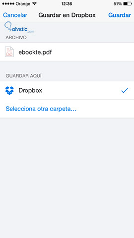 Al tener habilitada la opción de guardar en Dropbox, nos aparecerá la opción , y únicamente debemos seleccionarla.