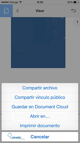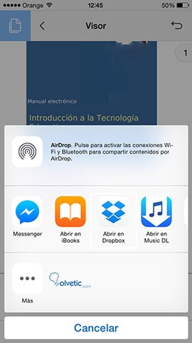 Pues bien, debes situarte en la parte superior de archivo, dar un pequeño toque con el dedo, y nos aparecerá "Abrir en..."