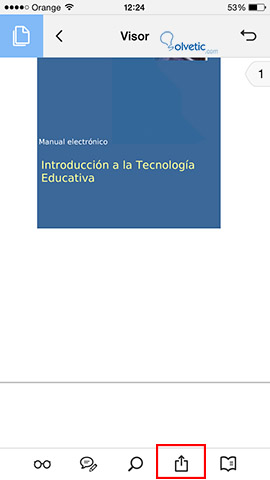 Una vez tengamos seleccionado el archivo, y nos encontremos dentro de éste, debemos buscar el símbolo de compartir