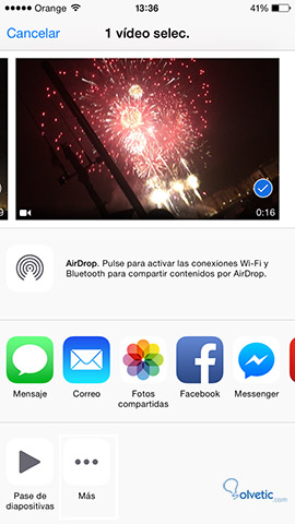 Una vez estemos dentro de la galería, seleccionamos los archivos que deseamos guardar en nuestro Dropbox, y pulsamos en el botón compartir.