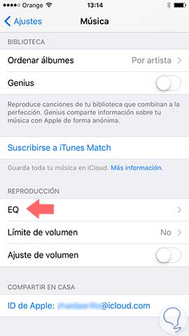 Para ello tenemos que entrar en la opción EQ de nuestro teléfono o tablet. Nos tenemos que dirigir “Ajustes” de nuevo “Música” y en el menú de “Reproducción” nos tenemos que situar en EQ