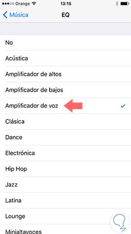 Una vez estemos dentro del “Ecualizador (EQ)” podemos ver una gran lista de opciones para mejora nuestra calidad de sonido, como por ejemplo, “Amplificador de voz” para escuchar la música con mayor claridad.