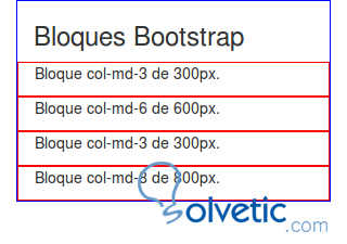 Debajo pusimos un bloque tamaño 8 osea 800 pixeles:Estos bloque son responsibles ya están configurados en el css de Bootstrap. Aquí podemos ver una muestra de como los bloques se adaptan a un cambio de pantalla de un dispositivo móvil.