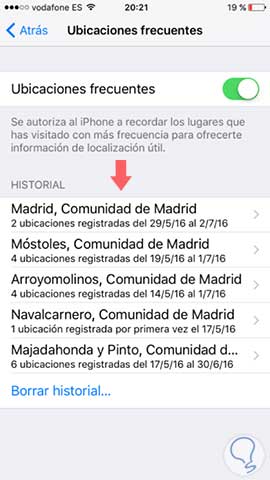 Si quieres desactivar esta función, desliza el botón de “ubicaciones frecuentes” que ahora aparece en verde (activado) y lo dejas blanco (desactivado). Además, puedes en la parte inferior tienes la opción de “Borrar historial” y se eliminarán todos los lugares registrados. Con esto pasos ya puedes estar tranquilo/a que tu ubicación está segura.