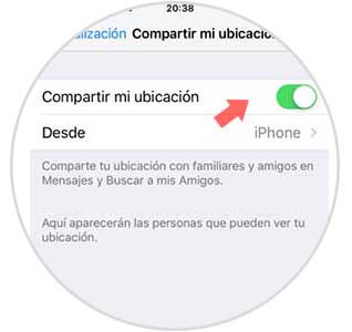 Pinchamos en “Compartir mi ubicación” y allí desactivamos el botón que aparece en verde