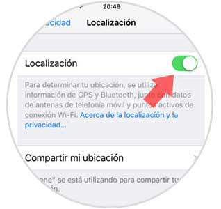 Desactivar los servicios de localización en su totalidad (que incluye las localizaciones frecuentes de seguimiento). Arrastrando el botón “localización”, para que pase de estar activado (verde) a estar desactivado (blanco).