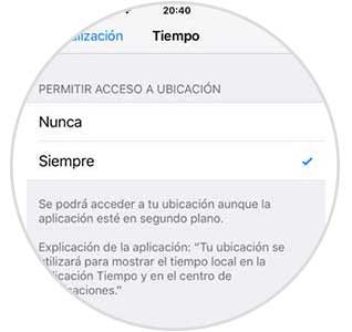 Especificar la forma y si se permite a cada aplicación instalada, acceder a la ubicación del dispositivo. Pinchamos en la aplicación y nos aparecen dos opciones para permitir el acceso a nuestra ubicación “Nuca” o “Siempre”. Simplemente, tienes que seleccionar la que elijas.