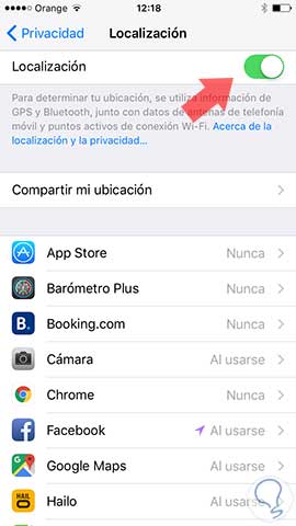 Una vez aquí desactivamos la “Localización” y de este modo toda nuestra información sobre donde nos encontramos. Si nos fijamos en la sección inferior, vamos a ver todas aquellas aplicaciones que tienen acceso. Podemos ir configurando una por una.
