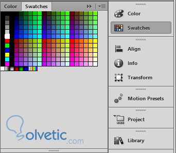 2.Panel de muestras: A través de este panel podremos seleccionar colores predeterminados para la apariencia de nuestros objetos vectoriales.
