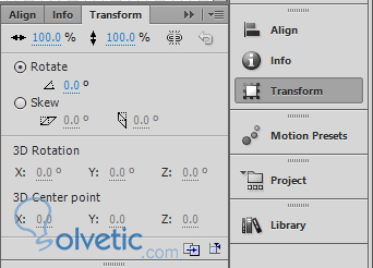 4. Panel Transformar: Podremos modificar las proporciones de los elementos, también podremos rotarlos o cambiar su oblicuidad.