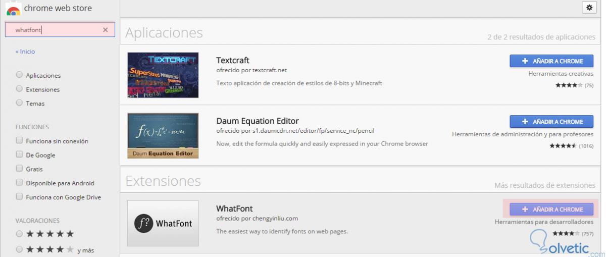Vamos a utilizar una extensión de Chrome llamada WhatFont qué debemos descargar de la tienda de aplicaciones del navegador, entramos y en la barra de búsquedas colocamos whatfont y del lado derecho tendremos las opciones que cumplan con esa búsqueda, localizamos la extensión y presionamos Añadir a Chrome.