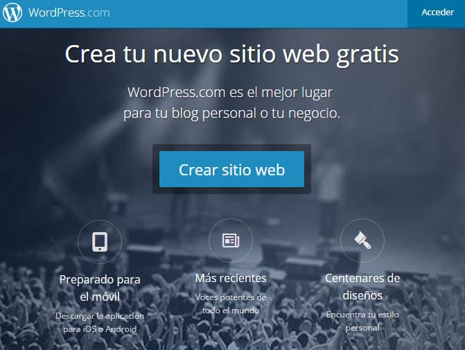 Vamos a ir a cualquier buscador (google, Bing, etc.) y buscamos la página Web de WP: https://es.wordpress.com/y le damos click. Una vez que la página ha ingresado verás la siguiente página:
