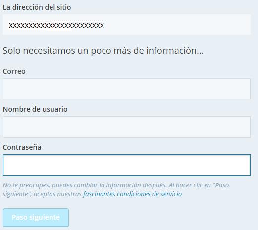 a. La página de WP coloca automáticamente la primera parte de tu email como nombre de usuario; puedes dejar este si estás de acuerdo. En este apartado si no existe otro usuario puedes quedártelo si no deberás cambiarlo ya que sino WP no te permitirá continuar.