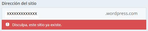 b. Puede ser que eventualmente encuentres que el nombre que quieres ya existe (ver imagen abajo) y tengas que cambiarlo; bueno si este es tu caso entonces usa toda tu creatividad para que el nombre sea atractivo y que a tus lectores y visitantes les interesa conocer lo que tienes que decir.