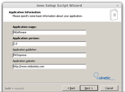 Iniciamos Inno Setuop y nos mostrara dos opciones crearlo mediante un wizard (que el software nos guíe) o hacerlo todo nosotros. Comenzamos un nuevo fichero, en la primera pantalla nos solicitara comenzar con el script y luego los datos de la empresa o autor.