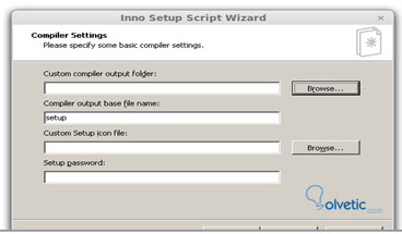 Luego la próxima pantalla permitirá seleccionar los idiomas de instalación, finalmente nos solicitara definir los parámetros del propio Inno Setup como ser: donde se creara el fichero setup, que nombre tendrá nuestro instalador, si le pondremos un icono, etc.