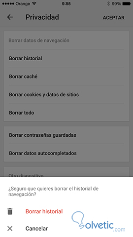 Nos pedirán una confirmación y si la aceptamos todo nuestro historial de navegación habrá quedado borrado.