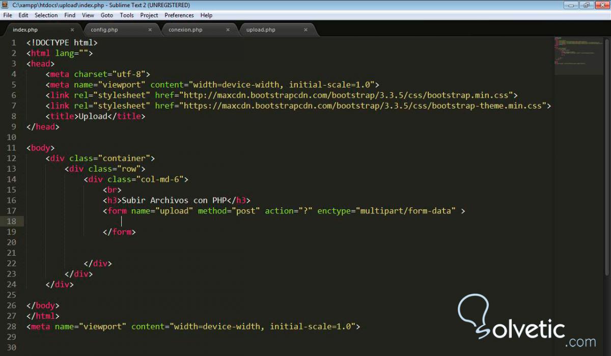 Volveremos a nuestro archivo “index.php” y luego de la etiqueta de cierre “</form>” colocaremos un include al archivo upload.php