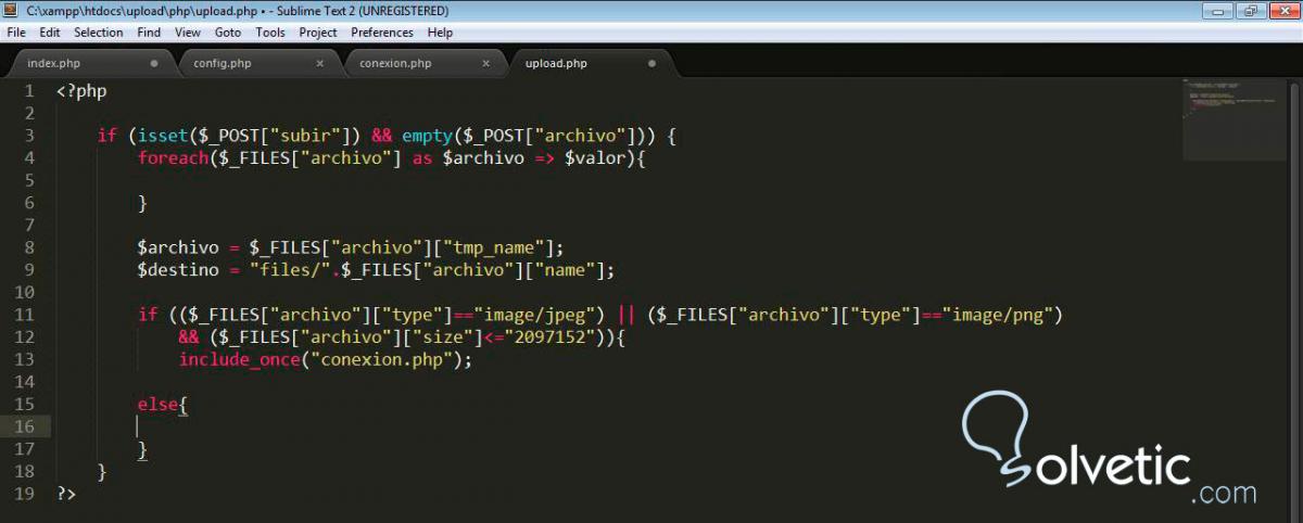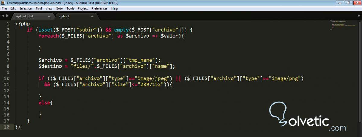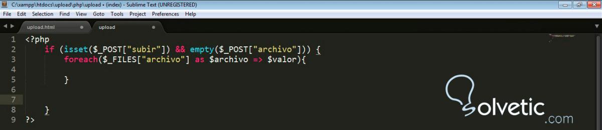 “subir” y si el campo “archivo” no está vacío, para esto escribiremos lo siguiente…