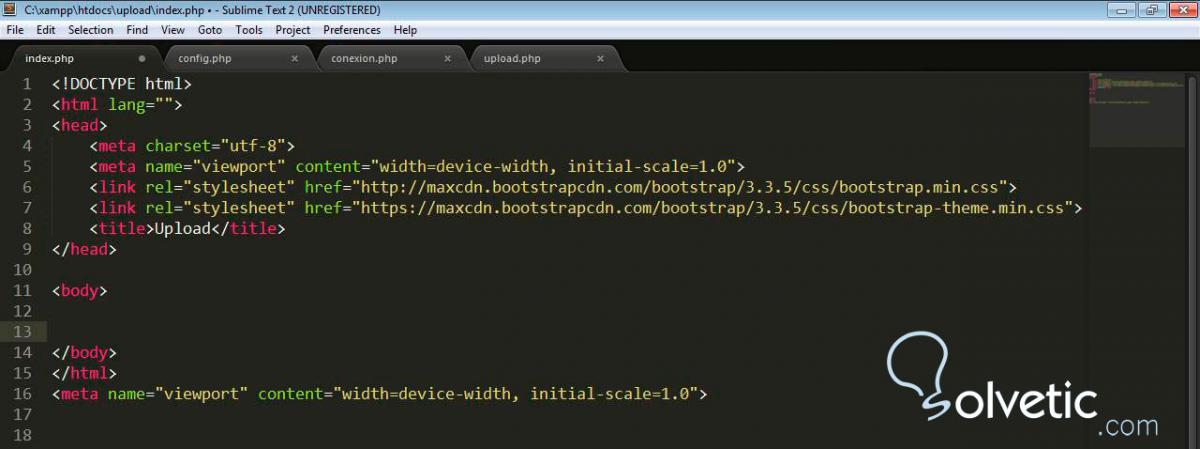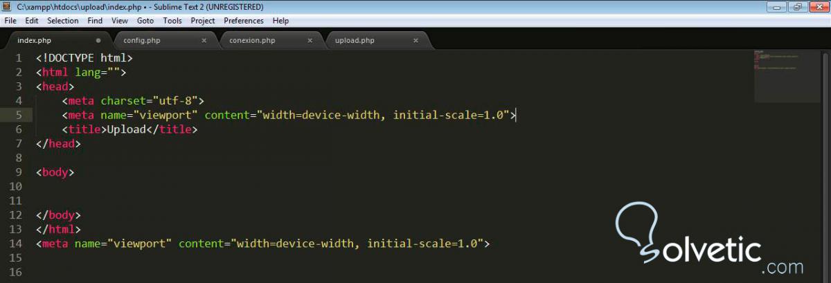 Ya tenemos nuestro html listo, así que ahora vamos a escribir algunas líneas en php que son las que se encargaran de subir nuestros archivos, para esto vamos a crear un nuevo archivo upload.php el cual guardare en la carpeta “php” que creamos en el paso 2.
