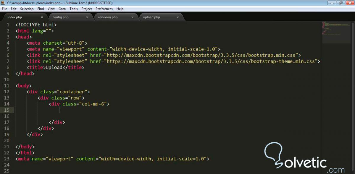 Ahora dentro de <div class=”col-md-6”> agregare un salto de carro <br> un título con <h3></h3> y comenzare a estructurar nuestro pequeño formulario para el upload…