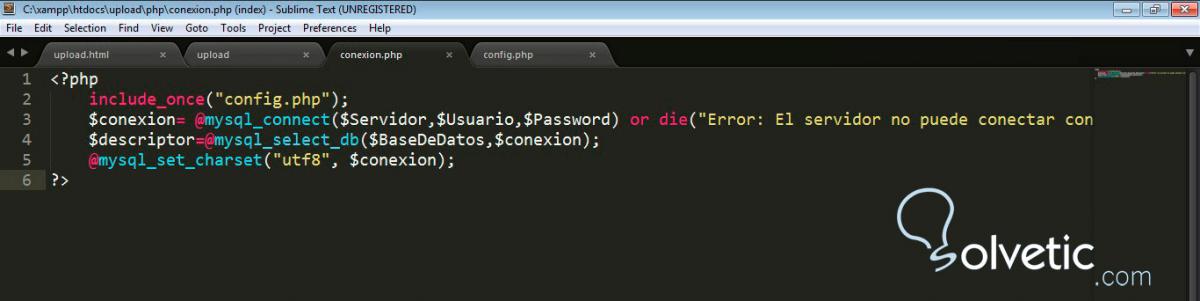 Ahora volveremos a nuestro archivo “upload.php” e incluiremos en él el archivo “conexión.php”