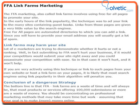2) Además Google está penalizando a estos sitios FFA, por lo cual los enlaces desde ellos no serán tenidos en cuenta.
