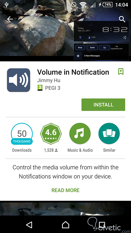 Primero debemos irnos a la Play Store y buscar la aplicación Volume in Notification, presionamos el botón de Install y esperemos que se complete este proceso.