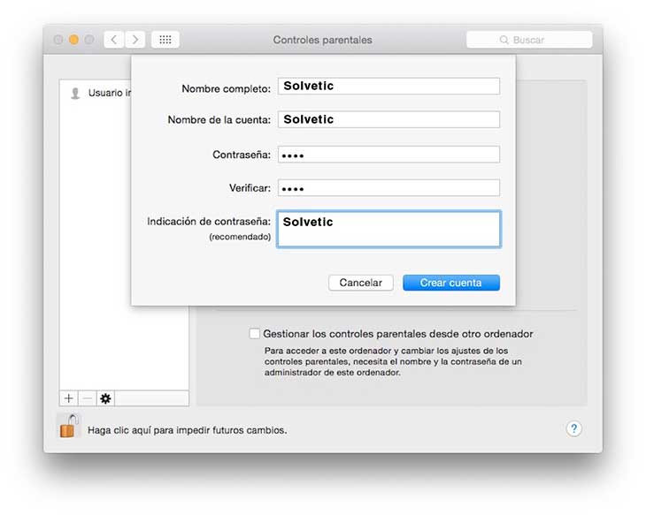 Lo primero que debemos hacer es dirigirnos al menú de Apple, y seleccionar “Preferencias del sistema” Una vez estemos dentro de las preferencias, debemos buscar “Control Parental”. Una vez estemos dentro del “Control Parental” debemos crear una cuenta con controles parentales.
