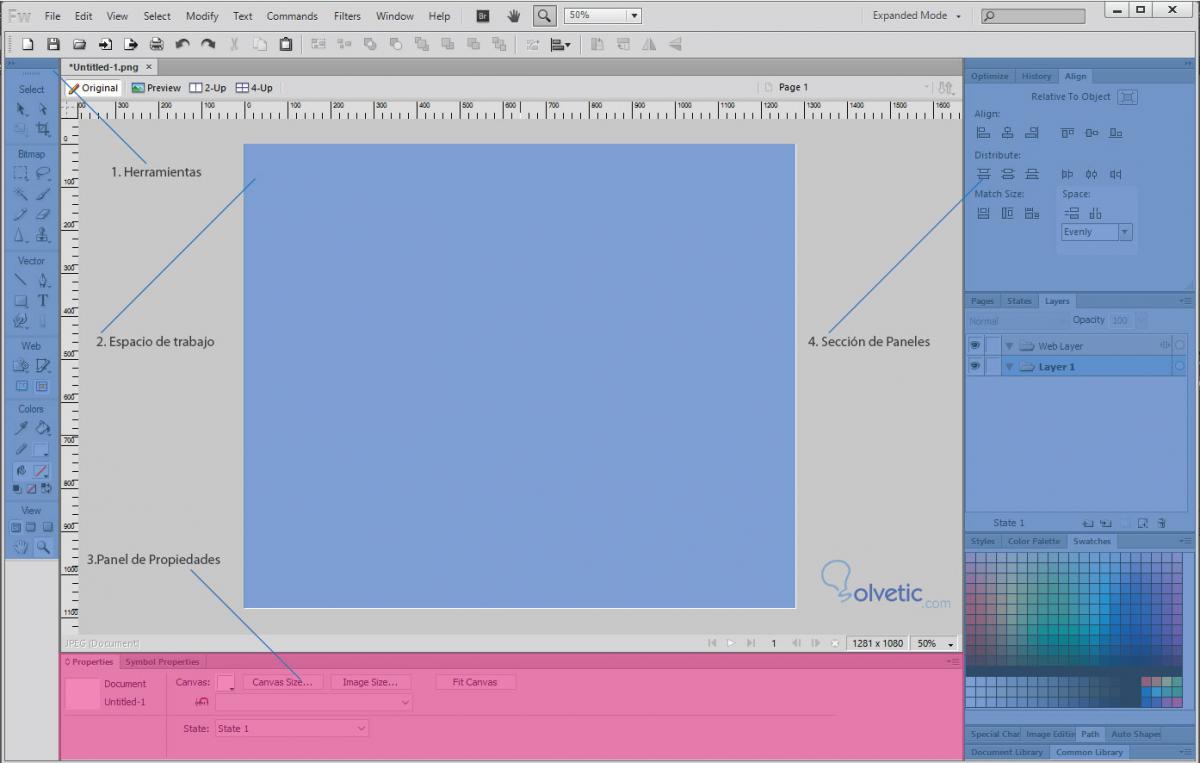 Cubriremos los paneles básicos que no servirán para la creación de futuros proyectos en Fireworks CS6.