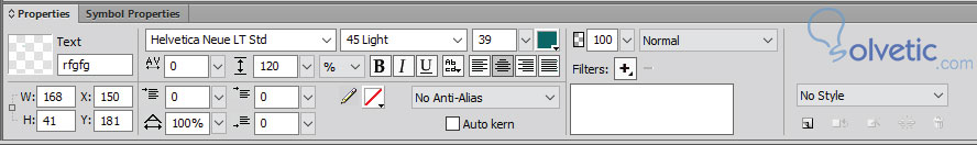 A través de este panel podremos controlar las características del objeto que tengamos seleccionado, ya sean las características tipográficas de las cajas de texto, la apariencia de los objetos vectoriales creados, la ubicación de las imágenes o en el caso de no tener seleccionado algún objeto en el espacio de trabajo, las características y configuración de nuestro espacio de trabajo.