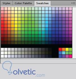 C) Panel muestras: Podremos seleccionar una serie colores predeterminados para las formas vectoriales que queramos crear o para las selecciones que vayamos a modificar.