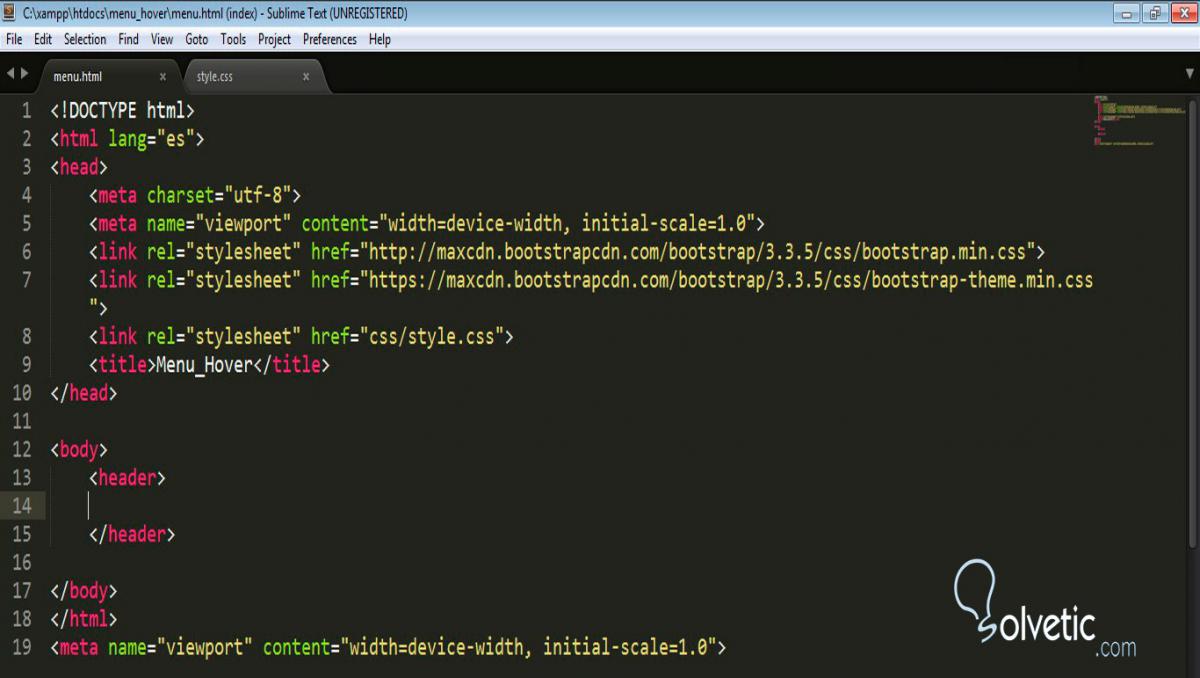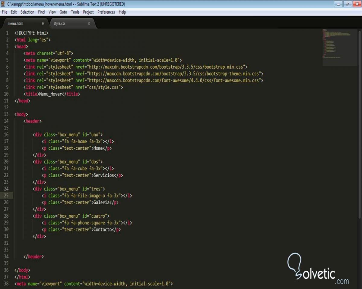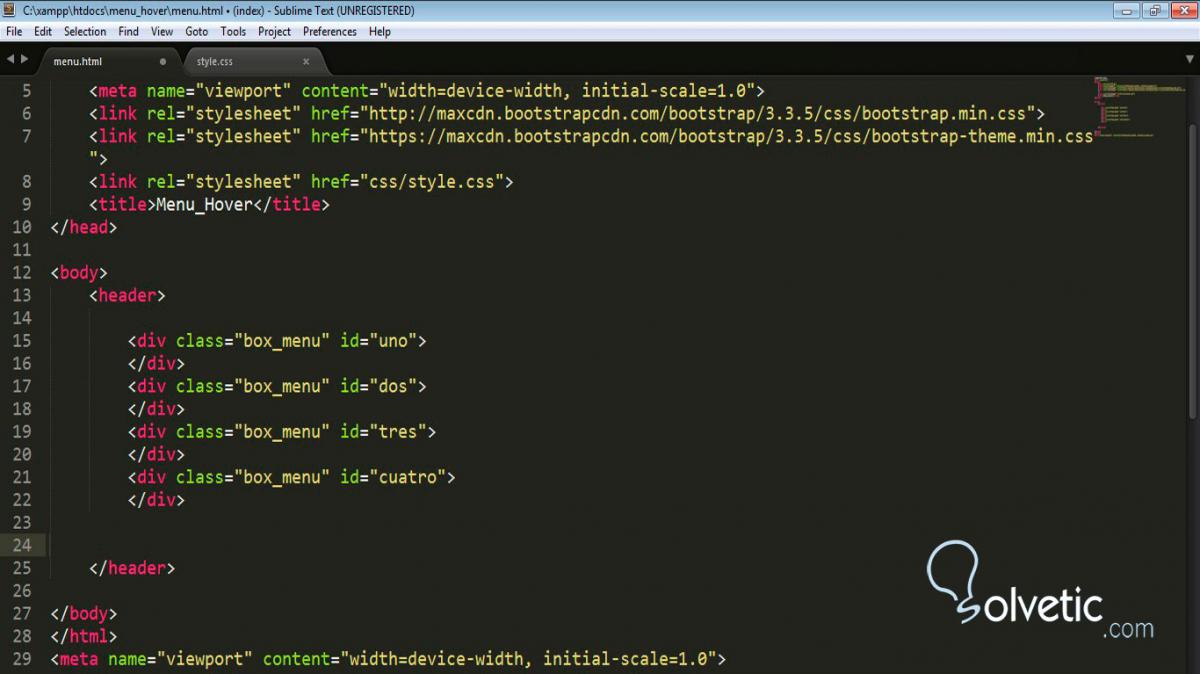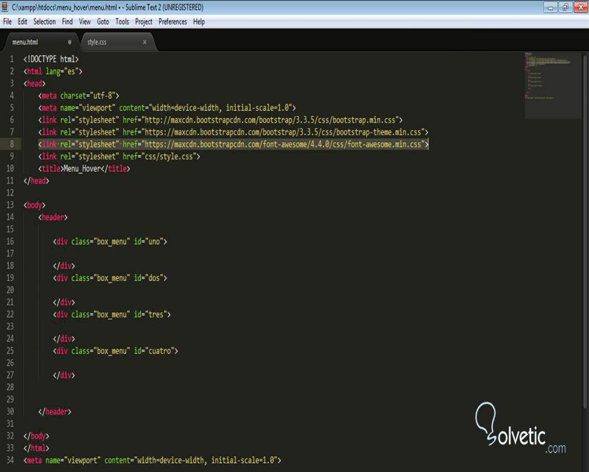 Posteriormente guardaremos este archivo como “menú.html” en la carpeta “menú_hover” creada en el paso 1.