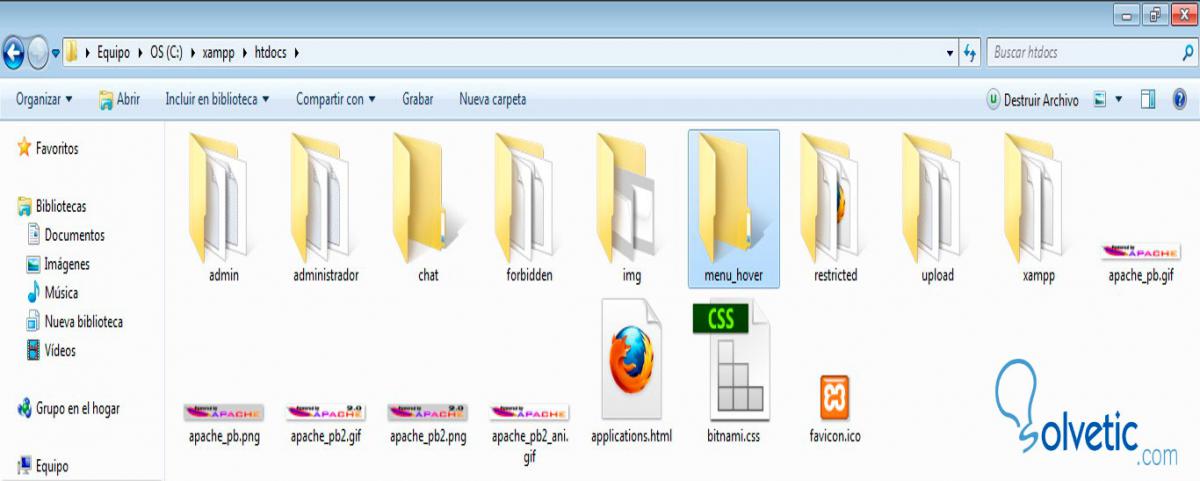 Comenzaré por ir al directorio de mi servidor local y crear una nueva carpeta para almacenar este proyecto, la llamaré “menú_hover” dentro de ella añadiré otra para contener los archivos css.