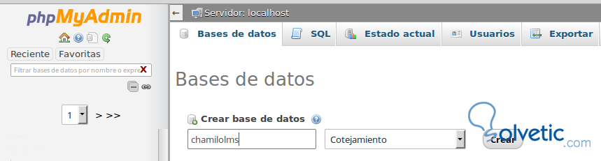 A continuación deberemos crear una base de datos Mysql en phpmyadmin para poder instalar la plataforma.