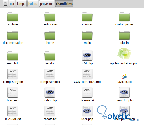 Crearemos en nuestro servidor una carpeta que denominamos chamilolms, dentro descomprimimos el archivo descargado.