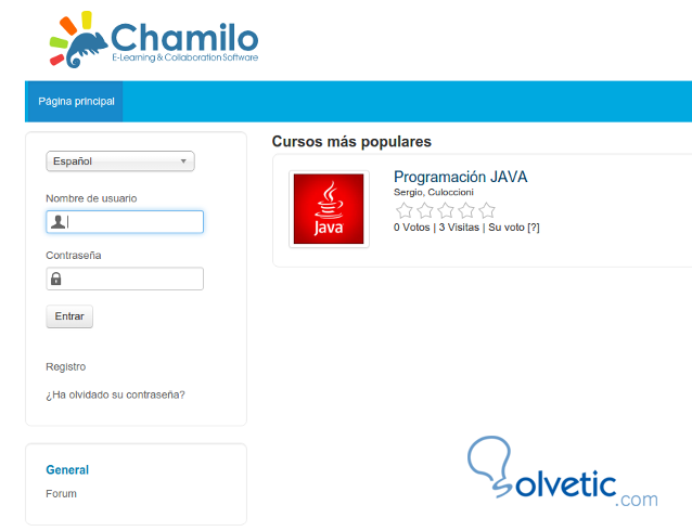 Una vez dado de alta el curso probaremos en la home, aunque aun no tenemos creado el diseño, pero se vería de la siguiente manera: