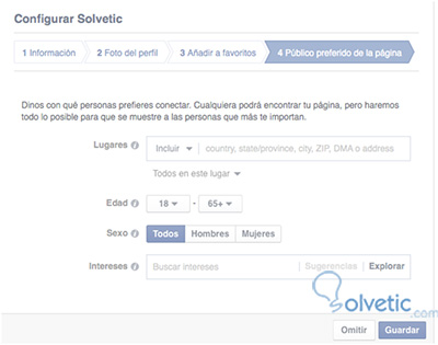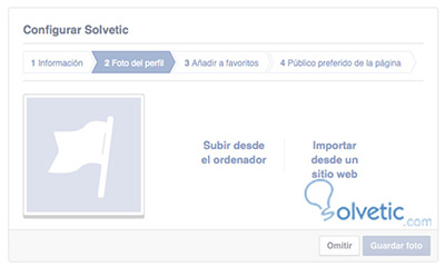 Además de lo pasos anteriores, en esta sección debemos seleccionar nuestra foto de perfil, si queremos añadirla como favoritos a nuestro perfil personal y que tipo de publico es el que prefieres para tu página.