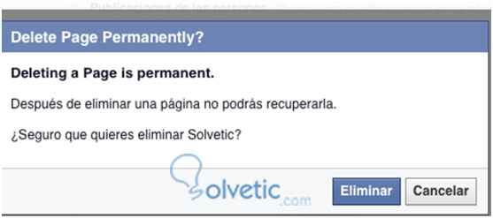 Cuando pulsamos en editar, nos va a preguntar si queremos eliminarla permanentemente, y de ser así debemos aceptar el mensaje que se muestra a continuación.