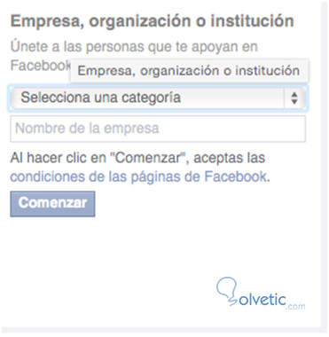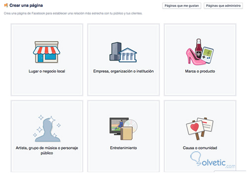 Lo primero que debemos seleccionar al crear nuestra página, es el tipo de servicio que queremos promocionar.