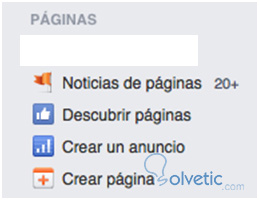 Una vez estemos identificados con nuestro perfil personal, debemos dirigirnos a la sección lateral izquierda. Puedes ver en la sección de páginas un apartado en el que tenemos la opción de “crear página”.
