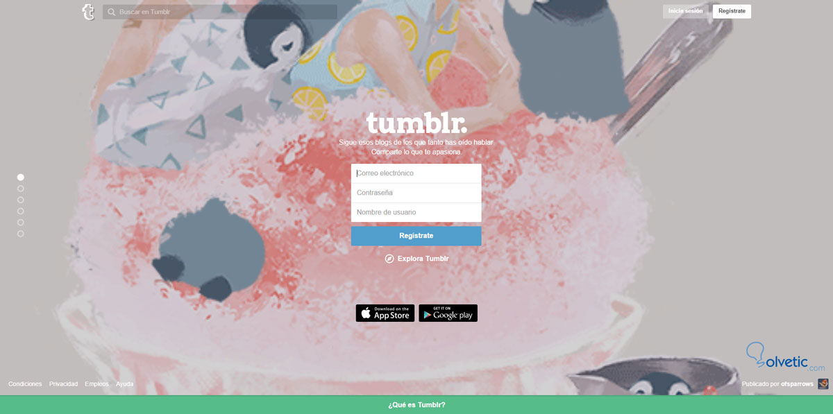Tumblr es una plataforma de micro-blogging en donde se publican millones de posts diariamente, y puede resultarte útil dependiendo de cómo la utilices. Como Pinterest, es un excelente lugar para buscar inspiración, pero también puede ser parte de una estrategia de comunicación, o puede ser un excelente lugar para mostrar un portafolio.