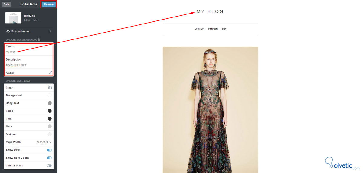 Cuando termines pincha “Guardar” y verás tu blog con los cambios que hayas aplicado:
