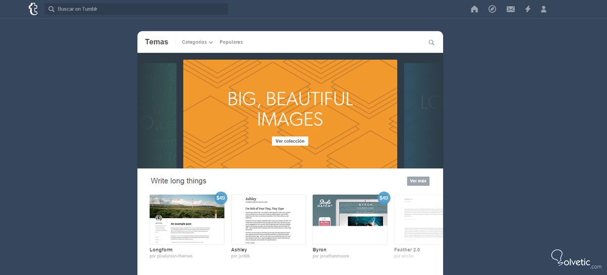 Aparte de crear y curar contenidos, una de las cosas más divertidas de Tumblr son las opciones de personalización que ofrece con sus temas. Dependiendo del tema que escojas, no solo cambiarás el color y look & feel de tu blog, sino también podrás tener distintas funcionalidades.