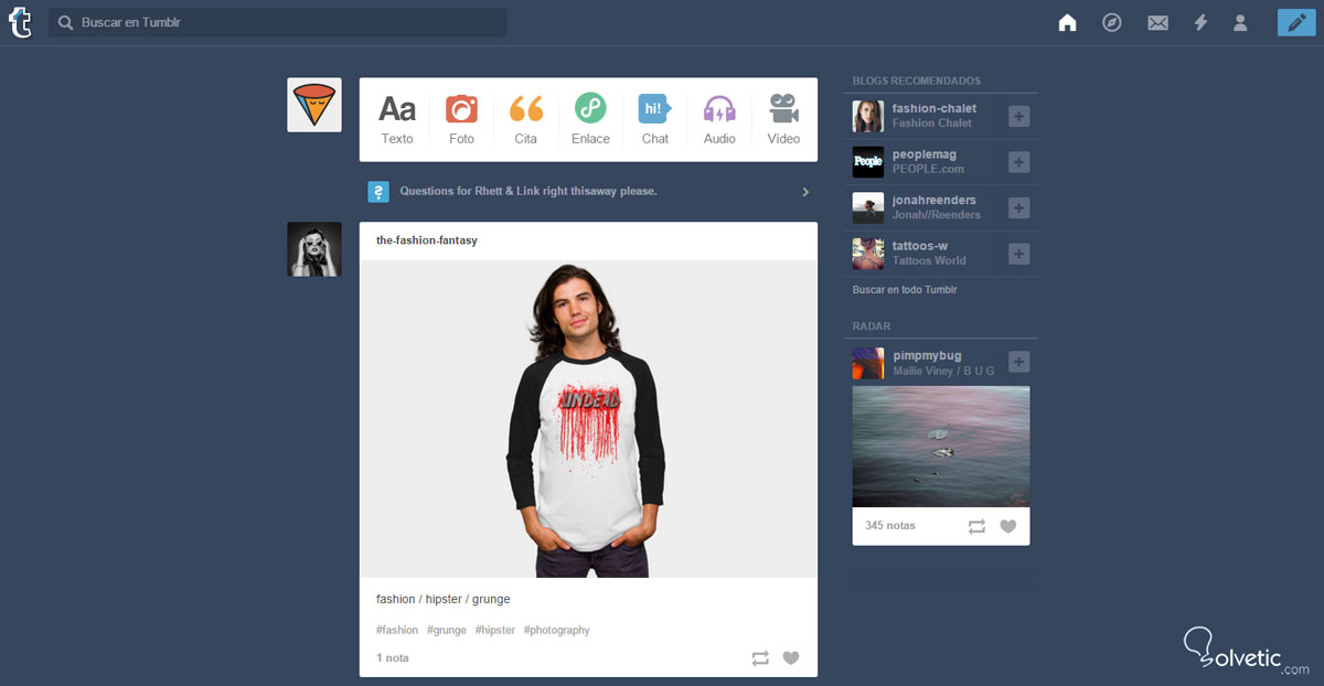 De allí, puedes regresar a tu “Escritorio” o “Dashboard” y comenzar a explorar, publicar y rebloguear: