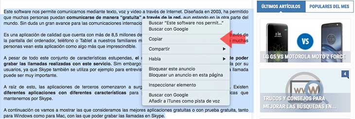 Lo primero que tenemos que hacer es dirigirnos hacia donde tengamos el texto que queremos que sea reproducido por nuestro Mac. Podemos seleccionar el texto desde cualquier lugar: internet, office, alguna aplicación… Una vez esté seleccionado tenemos que llevar a cabo la acción de copiar.