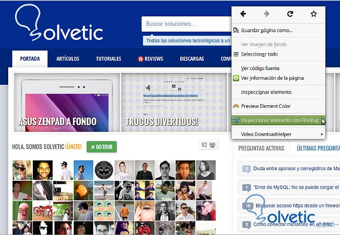 Veamos algunos ejemplo, accedemos a la web demotores.com.ar, damos clic derecho y activamos Firebug.